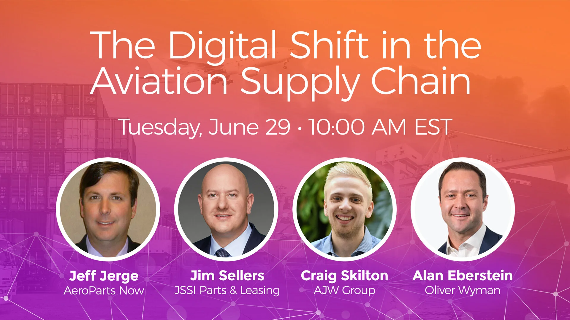 Get a front-row seat on a discussion about the digital trends shaping the supply chain of the aerospace industry. Get key insights to shape your organization from Jeff Jerge, CEO of AeroParts Now, along with a panel of aviation industry leaders.